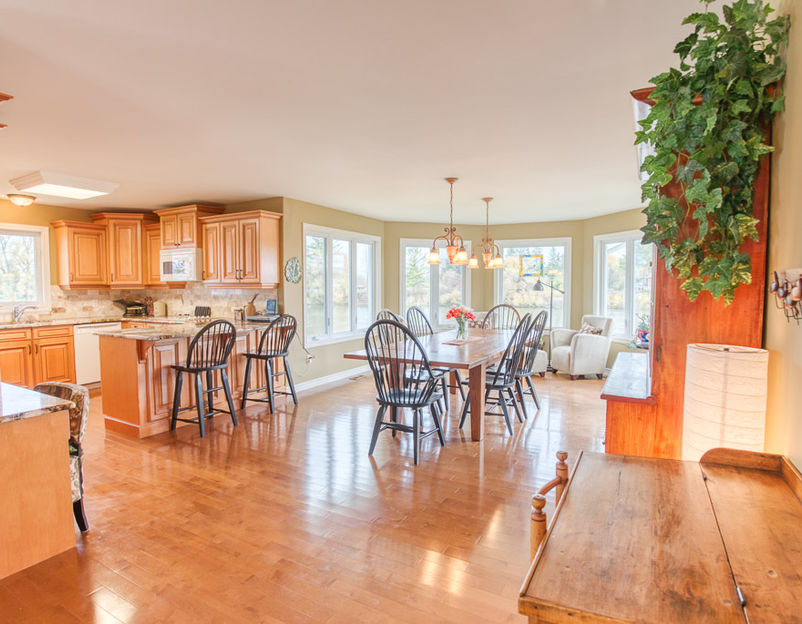 Discover this beautifully maintained raised bungalow on the shores of Colonel By Lake, offering peaceful waterfront living just minutes from Kingston. The bright main level features large lake-view windows, a spacious eat-in kitchen with deck walkout, two bedrooms, a renovated bath, and main-floor laundry. The versatile walk-out lower level includes a generous rec room with in-floor radiant heat, an additional bedroom/den, office/workout space, and a large bathroom with separate tub and shower.